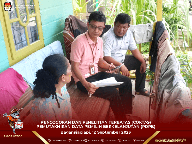 Bagansiapiapi - Anggota KPU Kabupaten Rokan Hilir, Kaswanto Dahlan melaksanakan Pencocokan dan Penelitian Terbatas (Coktas) terkait Pemutakhiran Data Pemilih Berkelanjutan (PDPB), Bagansiapiapi, Jum'at (12/9/2025).