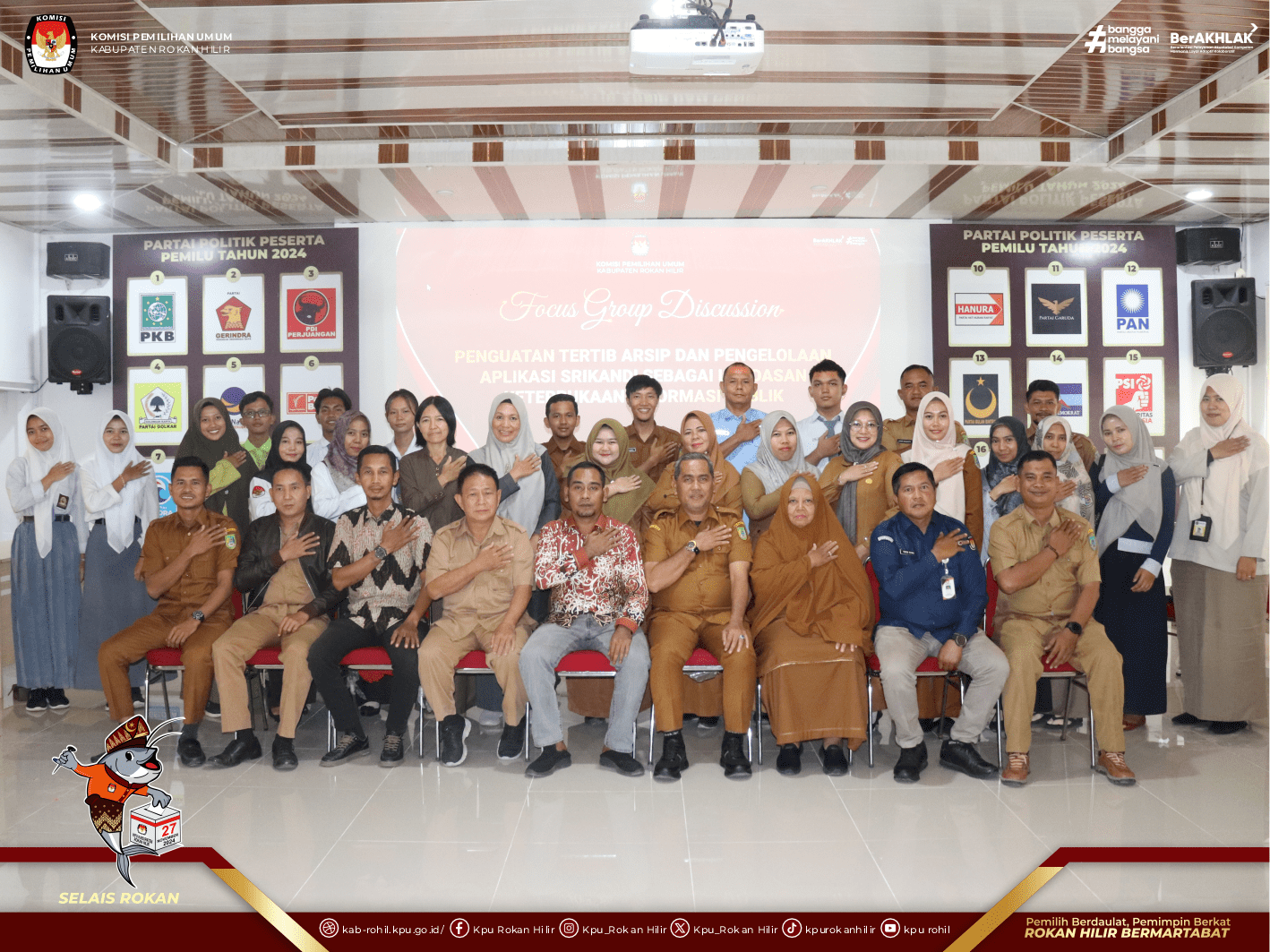 KPU Rokan Hilir juga menghadirkan para peserta yang terdiri dari OPD terkait, BPS, Sekolah Menengah Atas di Seputaran Kec. Bangko serta BPN.