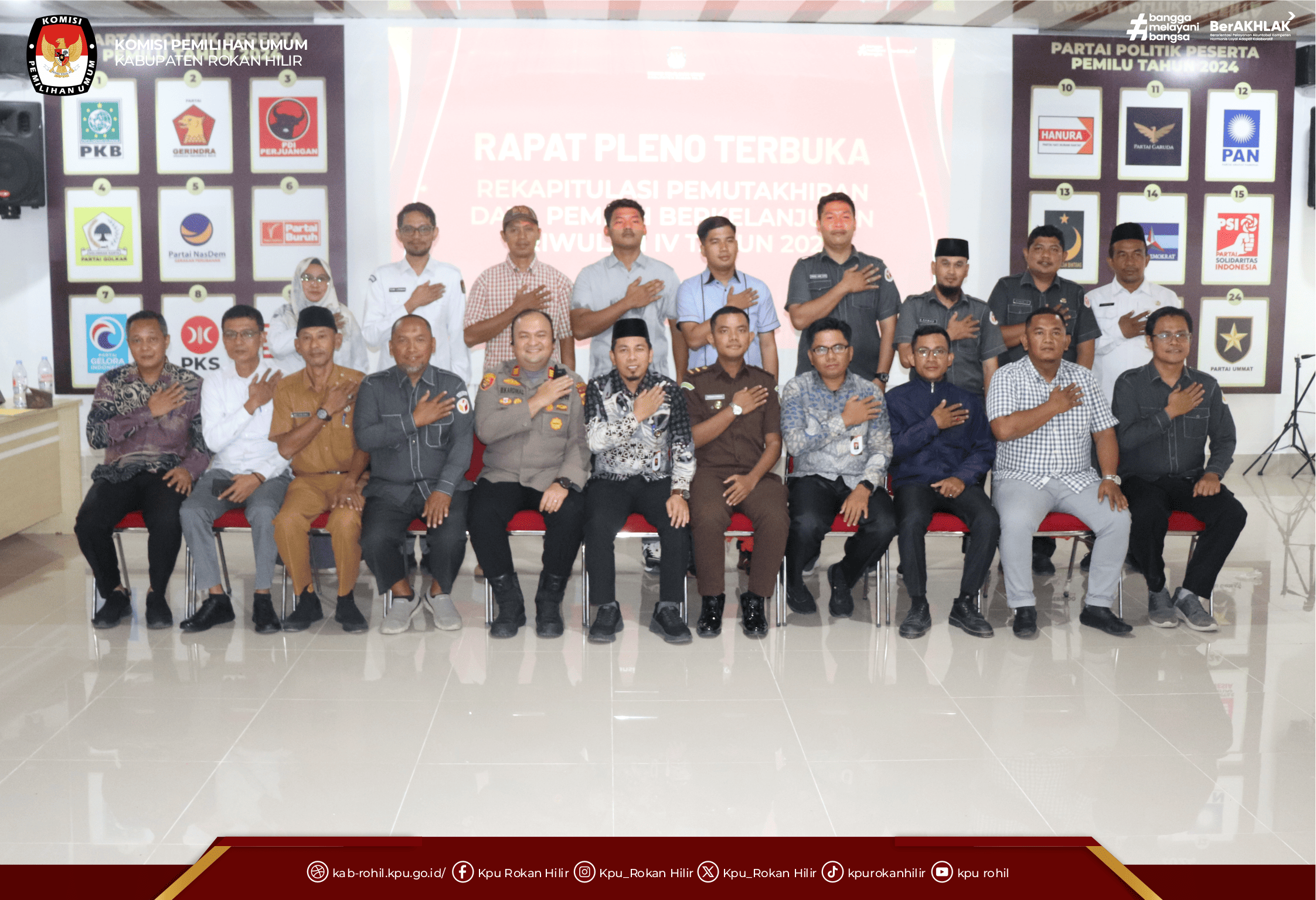 Berhadir pula pada Pleno ini Bawaslu Rokan Hilir, Polres Rokan Hilir, Kejari Rokan Hilir, Kesbangpol Rokan Hilir dan Partai Politik Peserta Pemilu Tahun 2024.