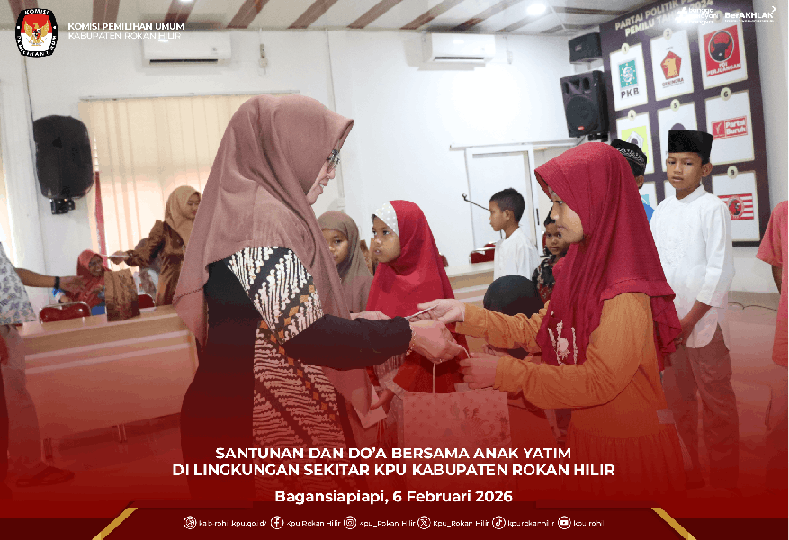 Bagansiapiapi - KPU Kabupaten Rokan Hilir melaksanakan santunan dan do'a bersama anak yatim di lingkungan sekitar KPU Kabupaten Rokan Hilir pada Jum'at (6/2/2026).