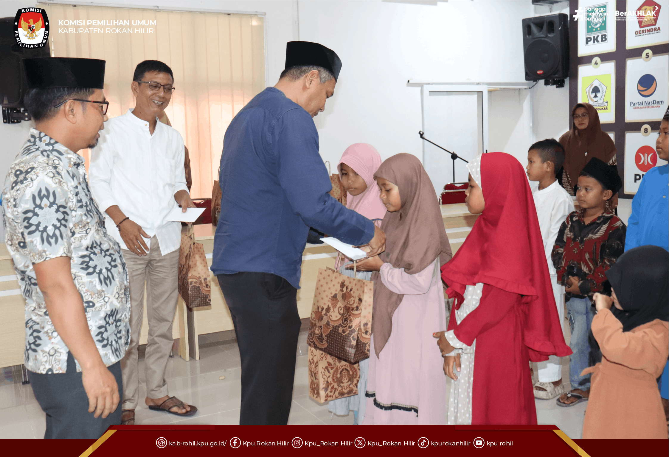 Berhadir pada santunan ini Ketua KPU Rokan Hilir, Eka Murlan, Anggota KPU Rokan Hilir, Datuk Zulhidayat dan Kaswanto Dahlan, Plt. Sekretaris, Romi Lukman para Kasubbag, Ibnu Sina, Endang Julia S. dan Yuningsih serta seluruh staff sekretariat KPU Rokan Hilir.