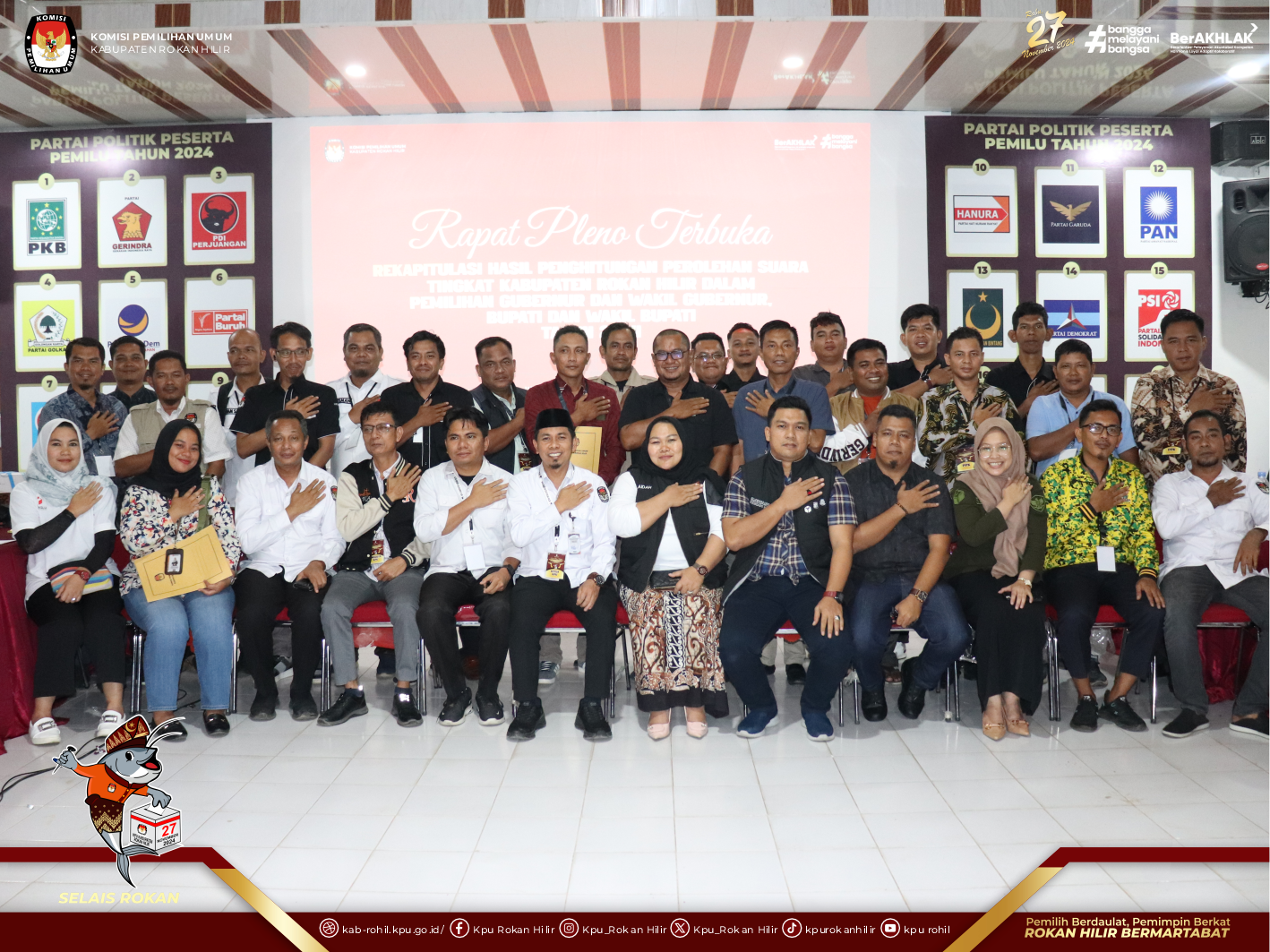 KPU ROHIL LAKSANAKAN RAPAT PLENO TERBUKA REKAPITULASI HASIL PEROLEHAN SUARA TINGKAT KABUPATEN ROKAN HILIR