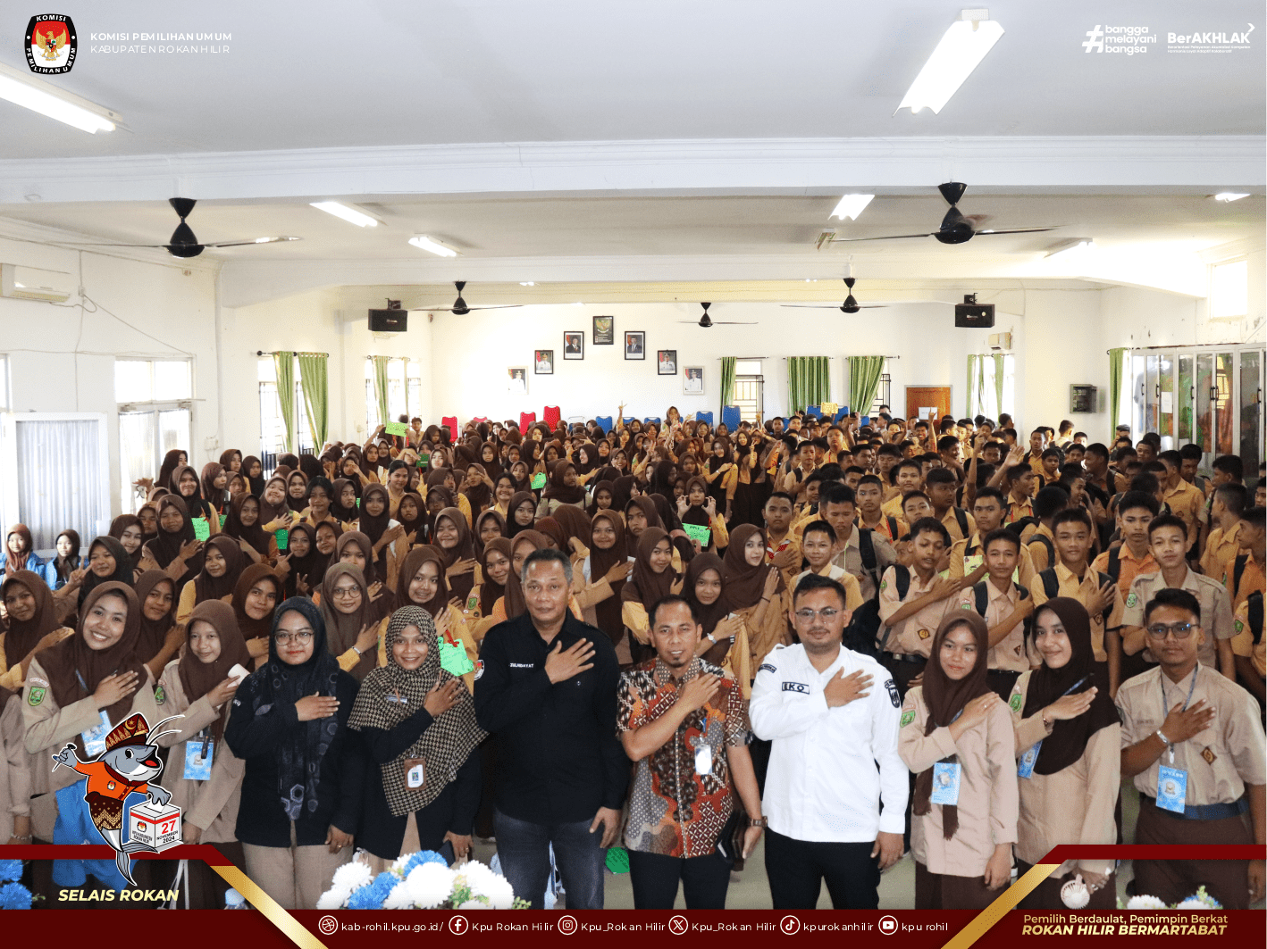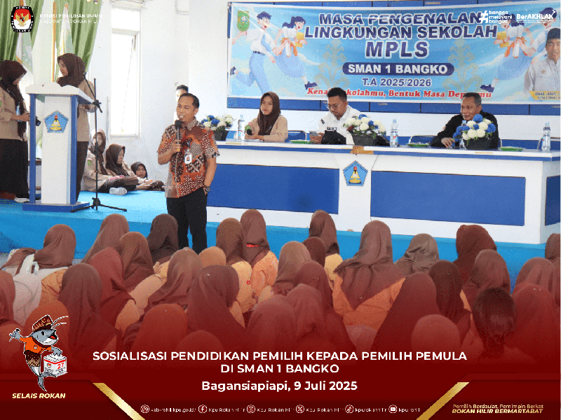 Bagansiapiapi - Ketua KPU Kabupaten Rokan Hilir, Eka Murlan bersama Anggota KPU Rokan Hilir, Datuk Zulhidayat melaksanakan Sosialisasi Pendidikan Pemilih kepada Pemilih Pemula yang dilaksanakan di SMAN 1 Bangko, Rabu (9/7/2025).