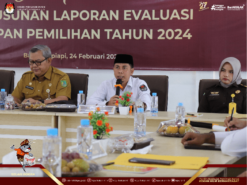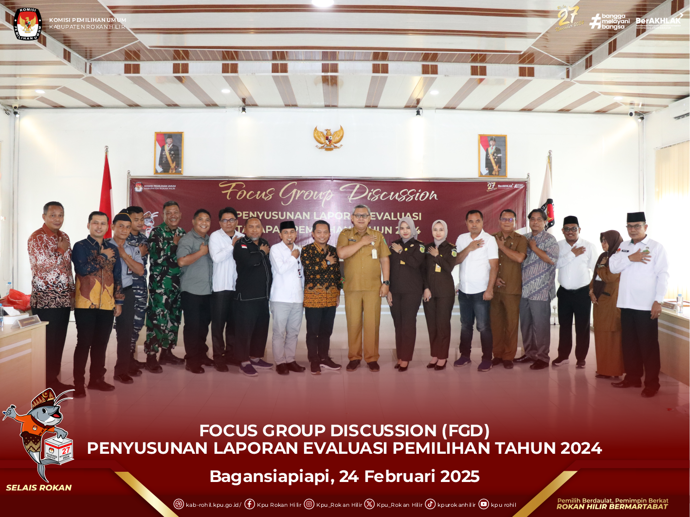 #temanpemilih KPU Kabupaten Rokan Hilir laksanakan Focus Group Discussion (FGD) Penyusunan Laporan Evaluasi Pemilihan Tahun 2024 yang dilaksanakan di Media Center KPU Rokan Hilir, Bagansiapiapi (24/2/2025).