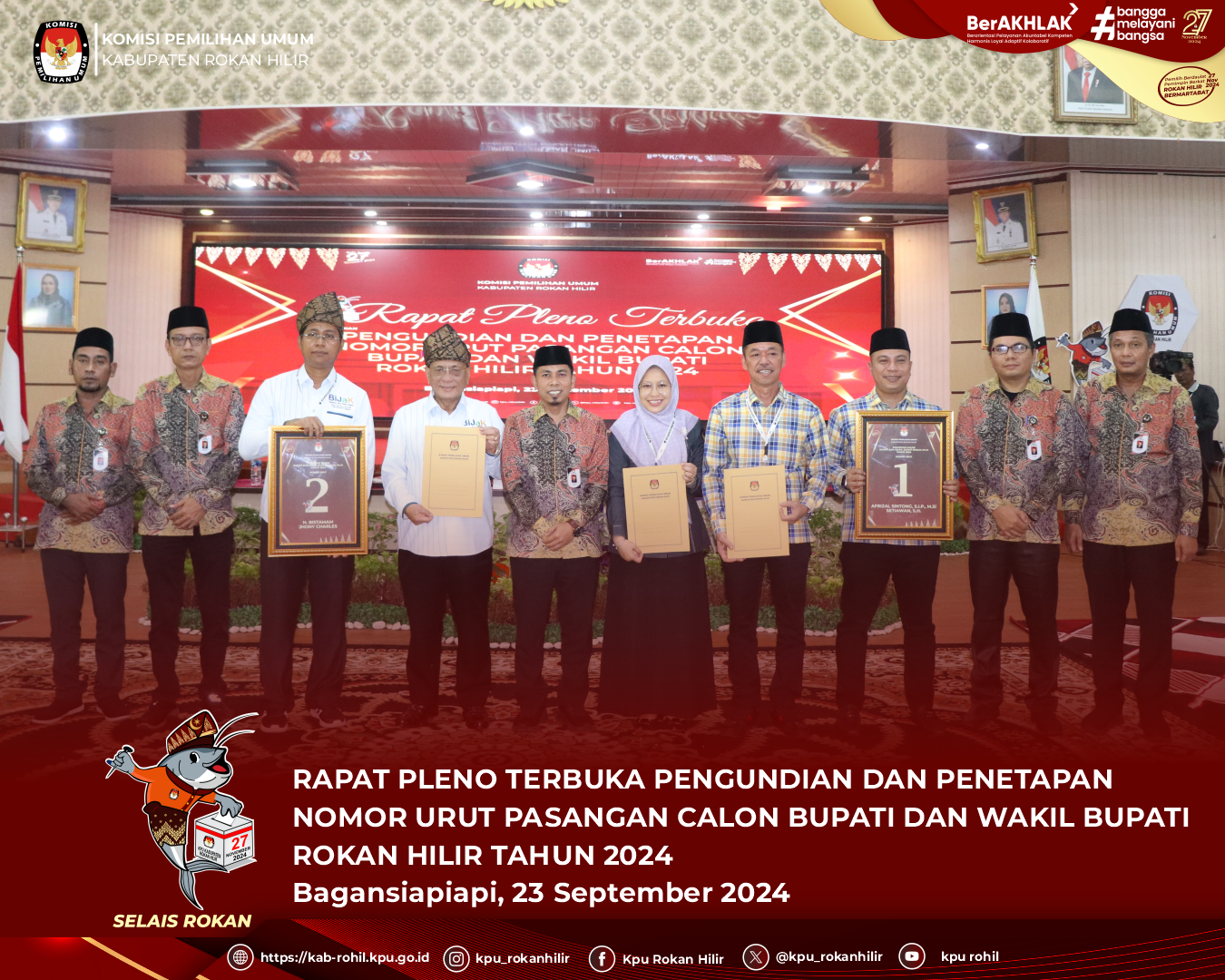 KPU ROKAN HILIR LAKSANAKAN PENGUNDIAN DAN PENETAPAN NOMOR URUT PASLON BUPATI DAN WAKIL BUPATI ROKAN HILIR TAHUN 2024