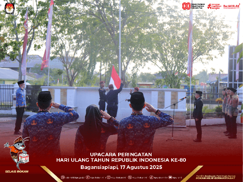 Bagansiapiapi - Ketua KPU Rokan Hilir, Eka Murlan memimpin pelaksanaan Upacara Peringatan HUT RI ke-80 di Halaman KPU Rokan Hilir, Bagansiapiapi (17/8/2025).