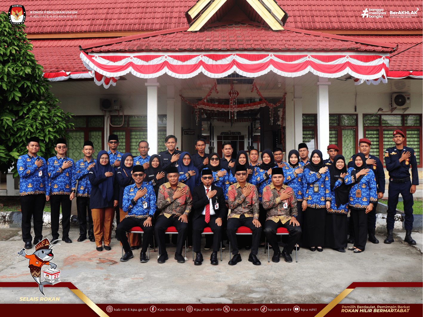Upacara ini terlaksana dengan khidmat dengan pengibaran bendera merah putih yang diiringi oleh lagu indonesia raya yang di kibarkan oleh Jagat Saksana KPU Rokan Hilir.