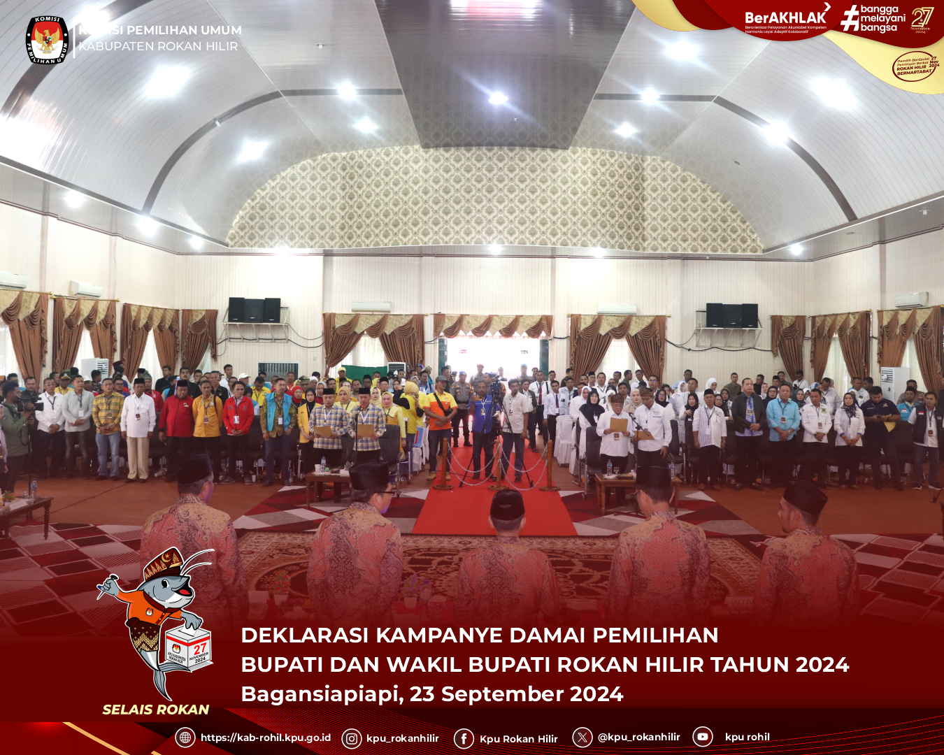 Kegiatan yang diikutin oleh Kedua Pasangan Calon Bupati dan Wakil Bupati Rokan Hilir beserta LO, Partai Politik Pengusul serta Pendukung Pasangan Calon ini sekaligus penandatanganan Naskah Deklarasi Kampanye Damai oleh Pasangan Calon Bupati dan Wakil Bupati Rokan Hilir, KPU Kabupaten Rokan Hilir, Bawaslu Rokan Hilir, Kapolres Rokan Hilir, Kodim 0321/Rokan Hilir dan Kajari Rokan Hilir.