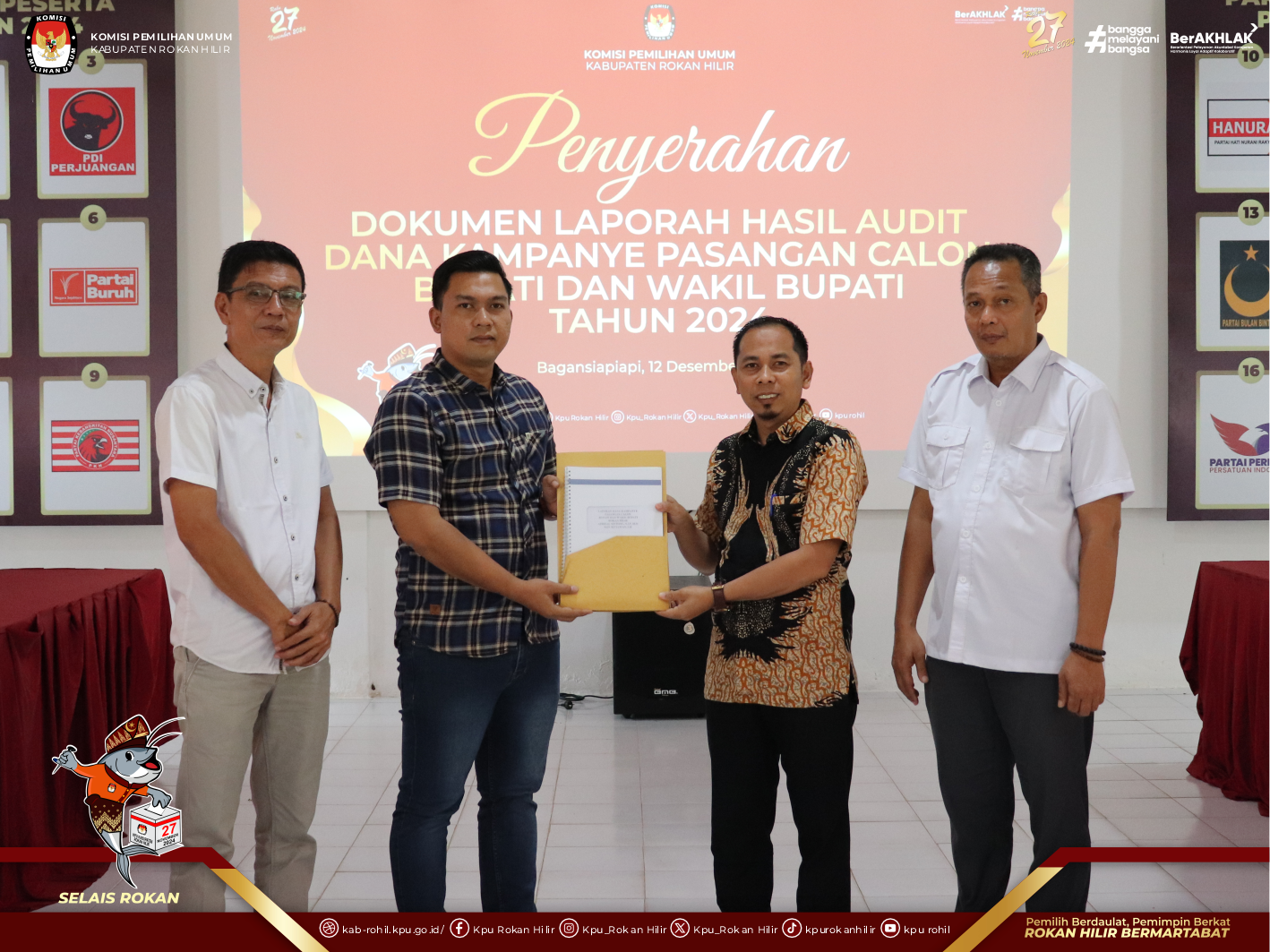 KPU ROKAN HILIR SERAHKAN DOKUMEN HASIL AUDIT LAPORAN DANA KAMPANYE KE PIHAK TERKAIT