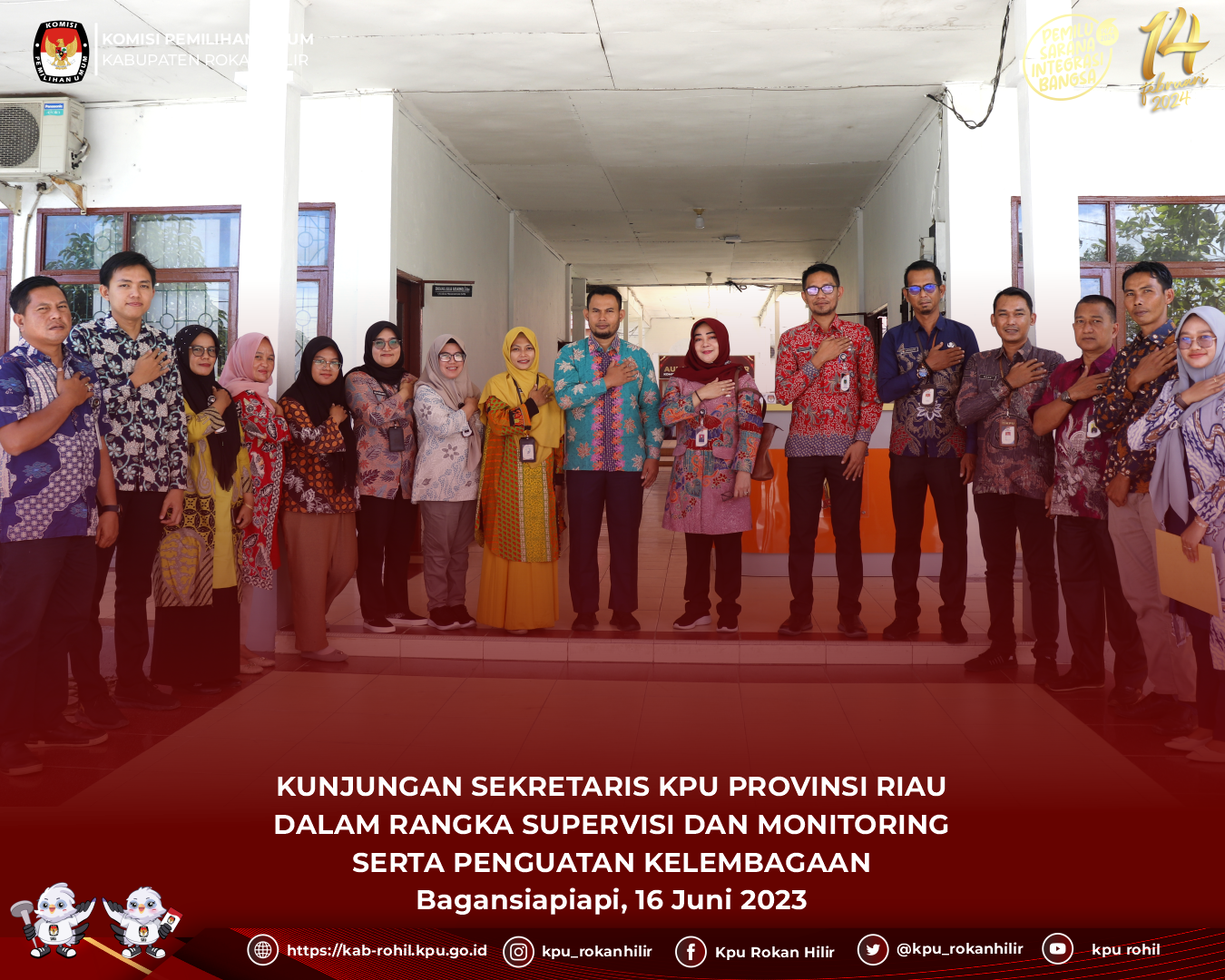 Disambut langsung oleh Plt. Sekretaris KPU Kabupaten Rokan Hilir, Romi Lukman beserta seluruh Kasubbag dan Staff dilingkungan Sekretariat KPU Kabupaten Rokan Hilir, serta Ketua KPU Kabupaten Rokan Hilir, Supriyanto, turut menyambut kedatangan Sekretaris KPU Provinsi Riau.