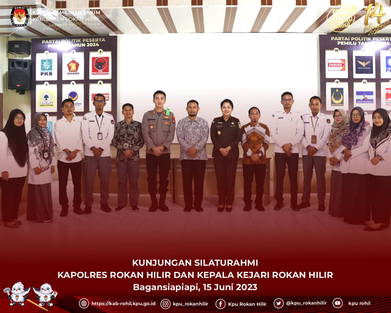 hari ini, Kamis 15/6/2023 KPU Kabupaten Rokan Hilir menerima kunjungan silaturahmi Kapolres Kabupaten Rokan Hilir, AKBP Andrian Pramudianto, bersama Kepala Kejari Kabupaten Rokan Hilir, Yuliarni Appy, SH, MH, di Media Center KPU Kabupaten Rokan Hilir.