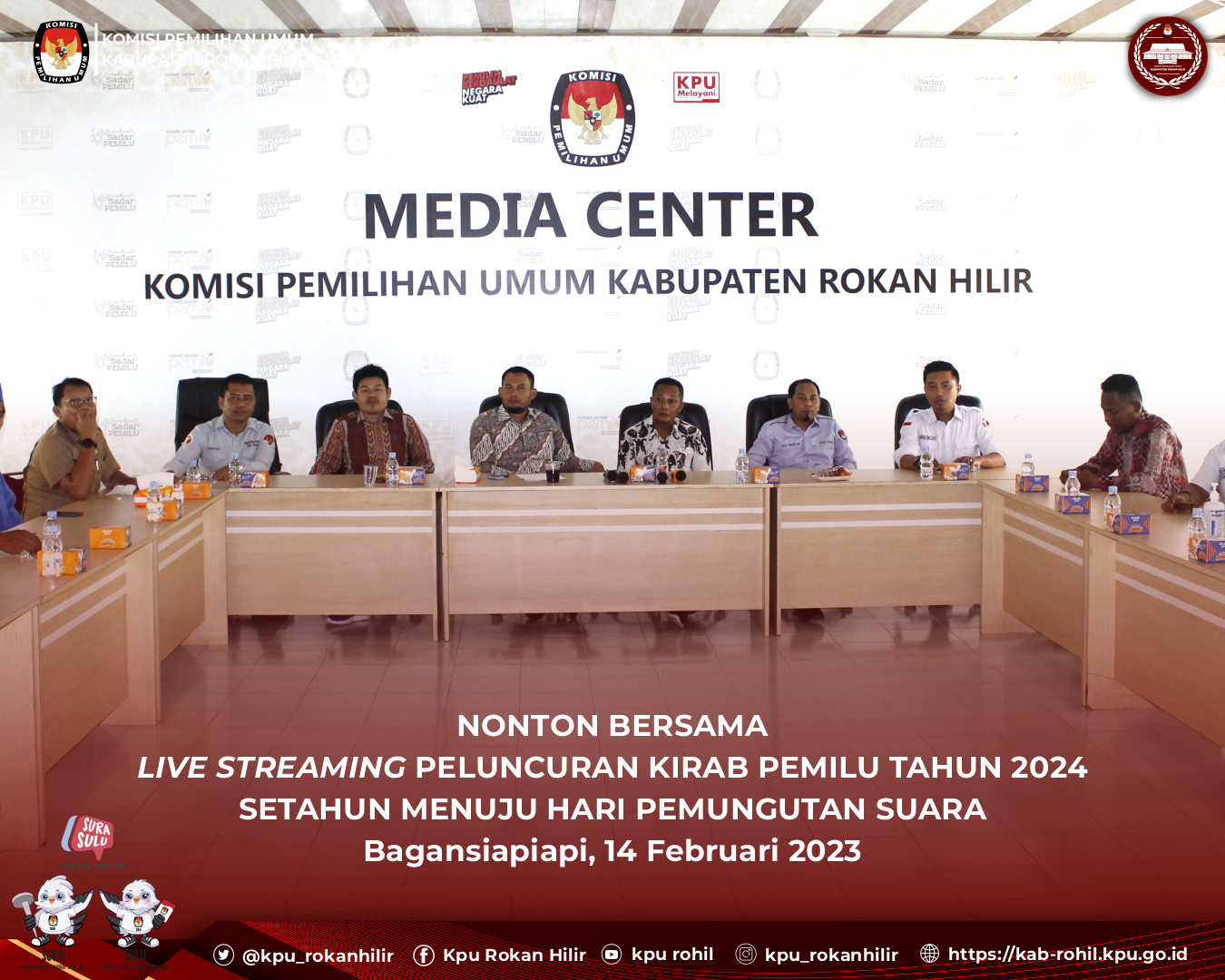 Dikabupaten Rokan Hilir dilaksanakan Nonton Bareng Kirab ini yang dihadiri langsung oleh Ketua dan Anggota KPU Rokan Hilir, Bawaslu Prov. Riau, Ketua dan Anggota Bawaslu Kab. Rokan Hilir, Forkompimda dilingkungan Kab. Rokan Hilir, Partai Politik di Kab. Rokan Hilir, Ormas dan Ormawa serta Penyenggara Adhoc se-Kabupaten Rokan Hilir.