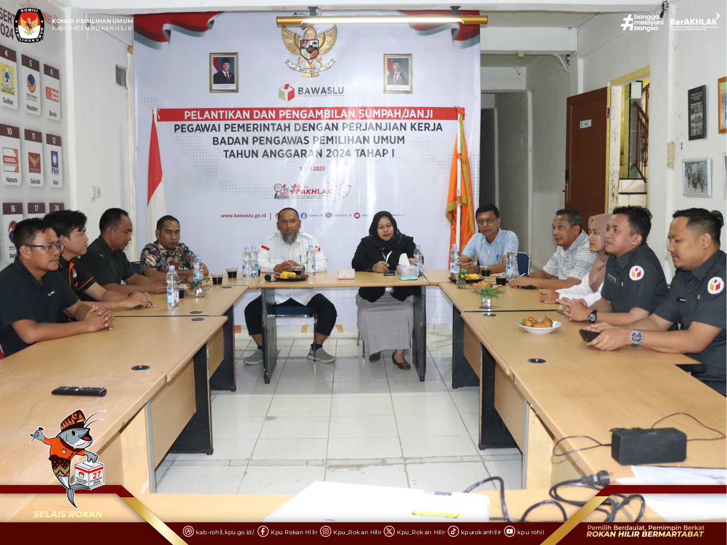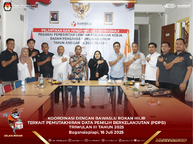 Bagansiapiapi - KPU Kabupaten Rokan Hilir berkoordinasi dengan Bawaslu Kabupaten Rokan Hilir terkait Pemutakhiran Data Pemilih Berkelanjutan (PDPB) Triwulan III Tahun 2025, Rabu (16/7/2025).
