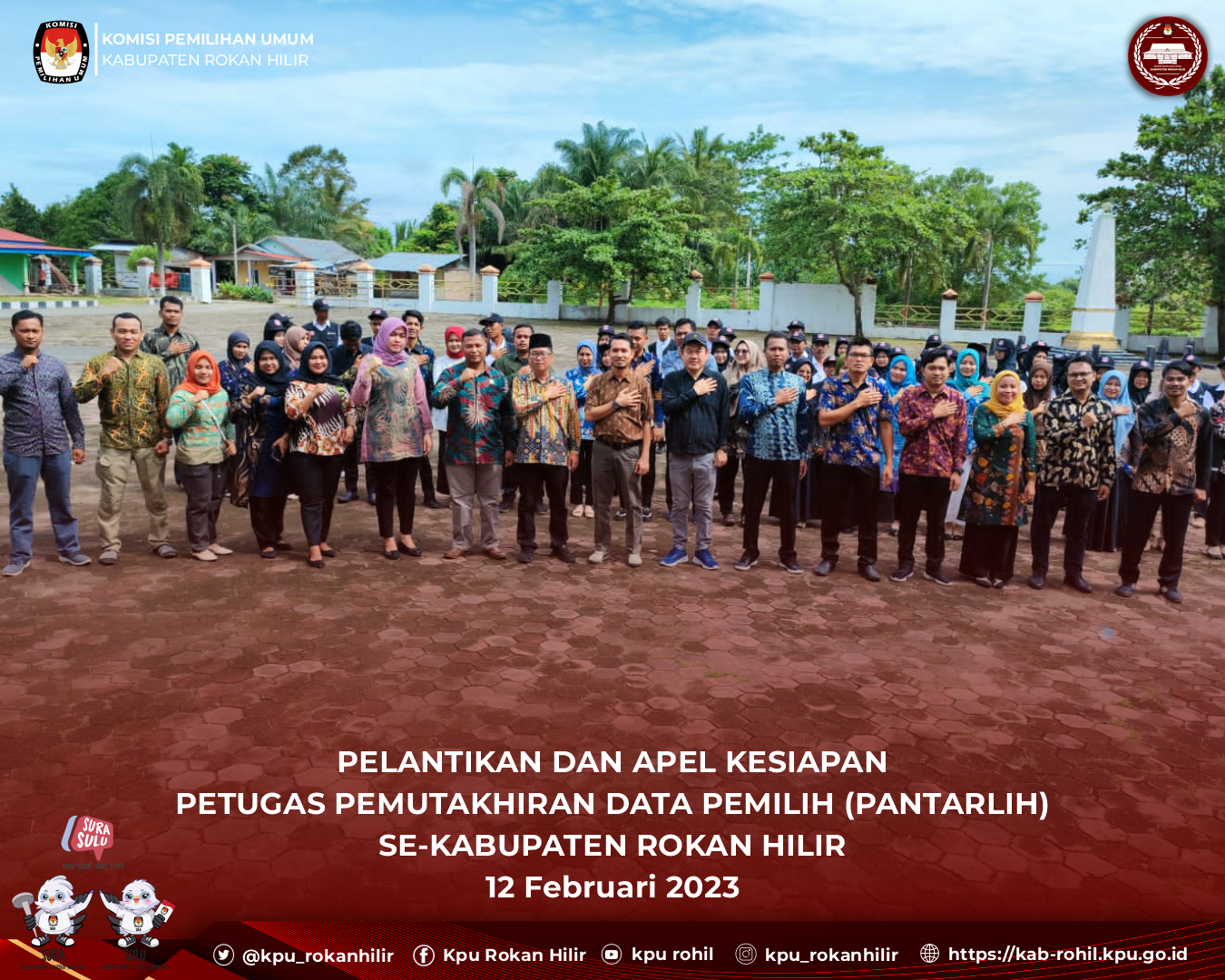 Komisi Pemilihan Umum (KPU) Rokan Hilir Melaksanakan Monitoring Pelantikan dan Apel Kesiapan Petugas Pemutakhiran Data Pemilih (PANTARLIH) se-Kabupaten Rokan Hilir. Pelantikan dan Apel Kesiapan Petugas Pemutakhiran Data Pemilih (PANTARLIH) se-Kabupaten Rokan Hilir dilaksanakan oleh PPS Kelurahan/Kepenghuluan Masing-masing. Namun ada beberapa kecamatan yang melaksanakan pelantikan dipusatkan di satu titik di kecamatan tersebut, Kecamatan Bangko dilaksankaan di depan gedung BPKAD Bagansiapiapi yang dihadiri langsung oleh ketua KPU Rokan Hiliri, Supriyanto, Bupati Rokan Hilir, Afrizal Sintong, Wakil Bupati Rokan Hilir, H. Sulaiman, PPK Bangko dan beberapa undangan lainnya. Kecamatan Bagan Sinembah Raya dilaksanakan di Kantor Camat Bagan Sinembah Raya yang dihadiri langsung oleh Tua Panggabean Nasution, Anggota KPU Rokan Hilir. Kecamatan Rimba Melintang di Kantor Camat Rimba Melintang, Tanah Putih Tanjung Melawan yang dilaksankan di Halaman kantor camat Tanah Putih Tanjung Melawan dan dihadiri Langsung oleh Hendra selaku Komisioner KPU Rokan Hilir.