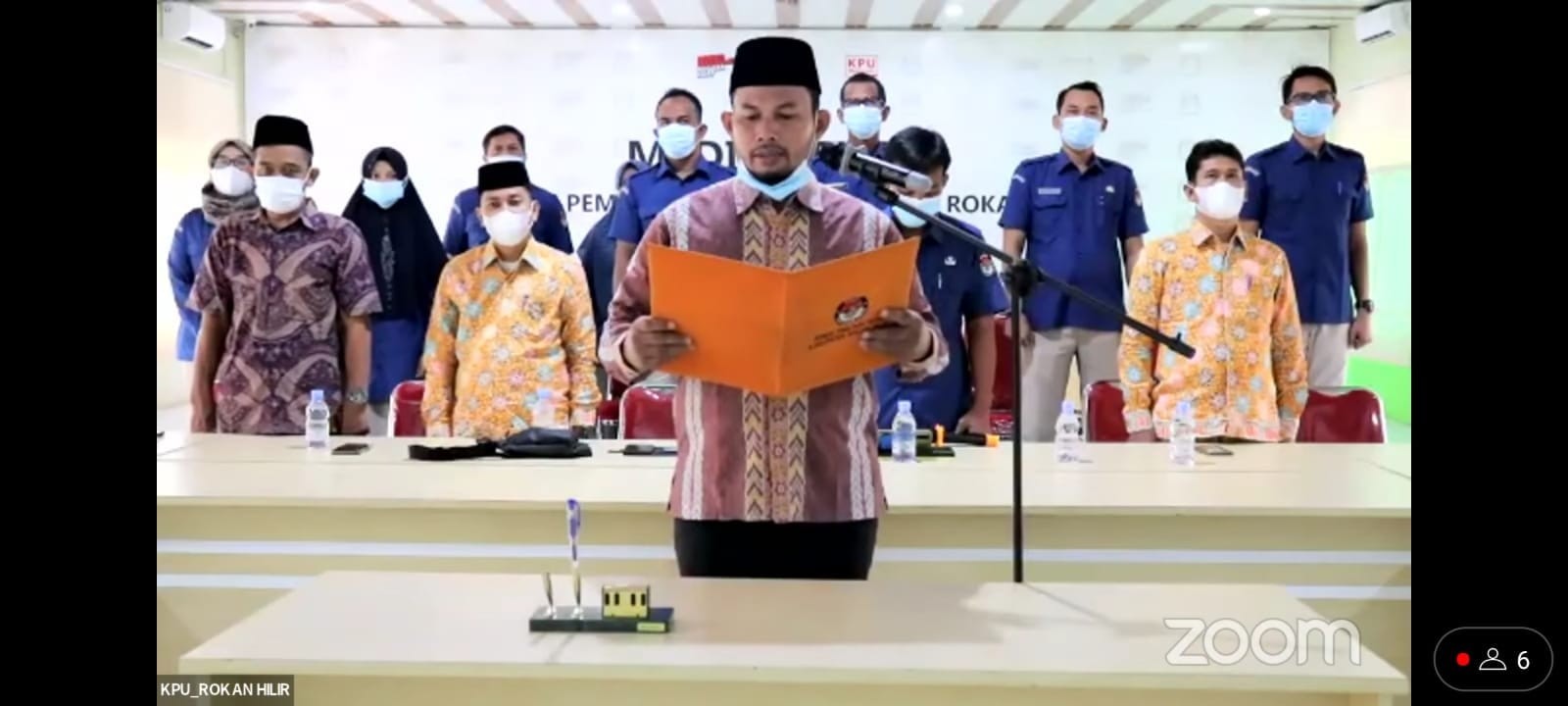 hari ini selasa, 18 Januari 2022, Kpu Provinsi Riau mengadakan acara Penguatan Integritas Penyelenggara Pemilu dan Penandatanganan Pakta Integritas dan Perjanjian Kinerja KPU Riau dengan KPU Kabupaten/Kota yang ada di Riau, melalui daring. Acara ini diagendakan untuk 2 (dua) hari yaitu tanggal 18 dan 19 Januari 2022. Komisi Pemilihan Umum Kabupaten Rokan Hilir yang telah di sepakati sebagai perwakilan dari 12 Kabupaten untuk membacakan Pakta Integritas, dan telah di laksanakan dengan penuh semangat oleh Supriyanto, S.Pi, M.Si selaku Ketua Komisi Pemilihan Umum Kabupaten Rokan Hilir.