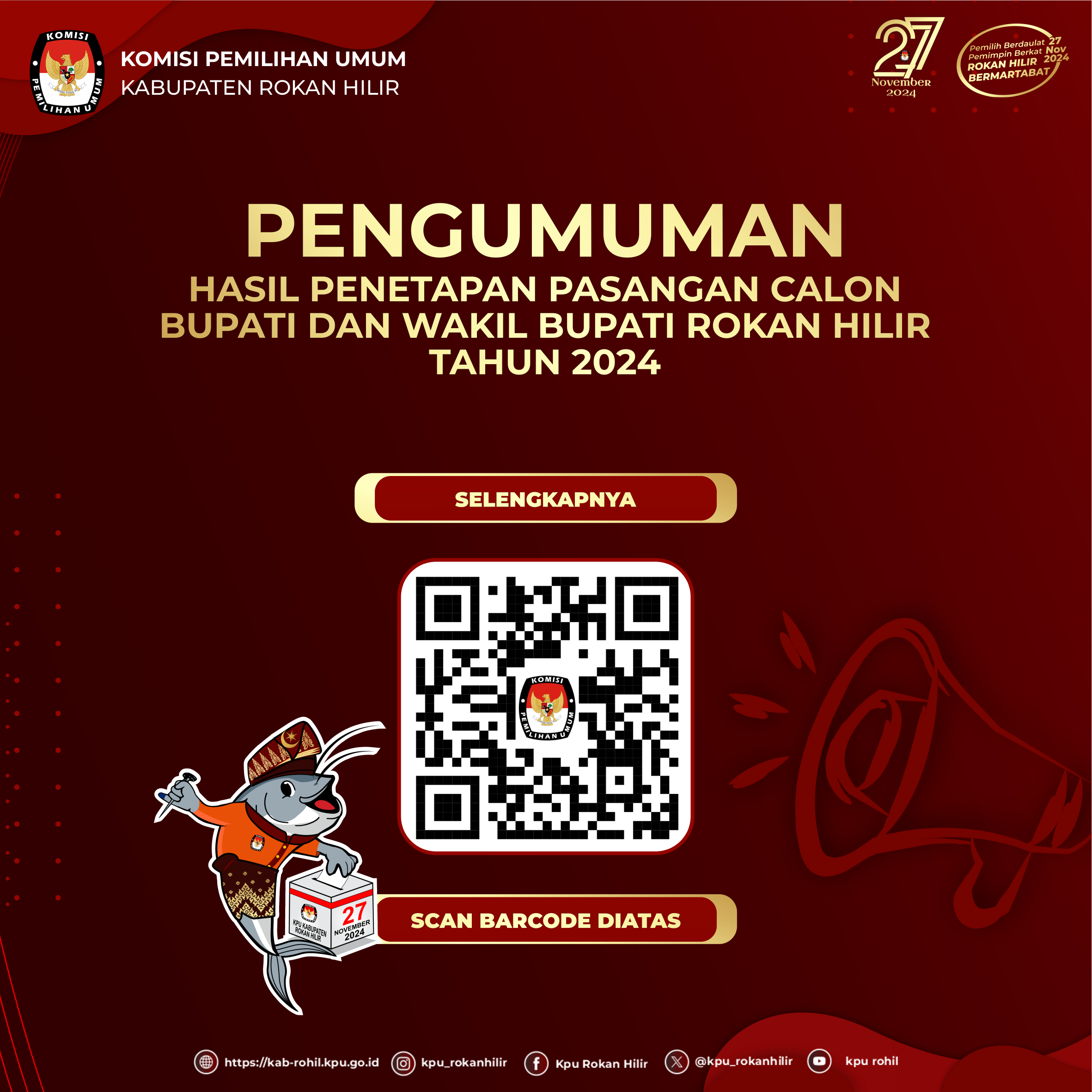 PENGUMUMAN HASIL PENETAPAN PASANGAN CALON BUPATI DAN WAKIL BUPATI ROKAN HILIR TAHUN 2024