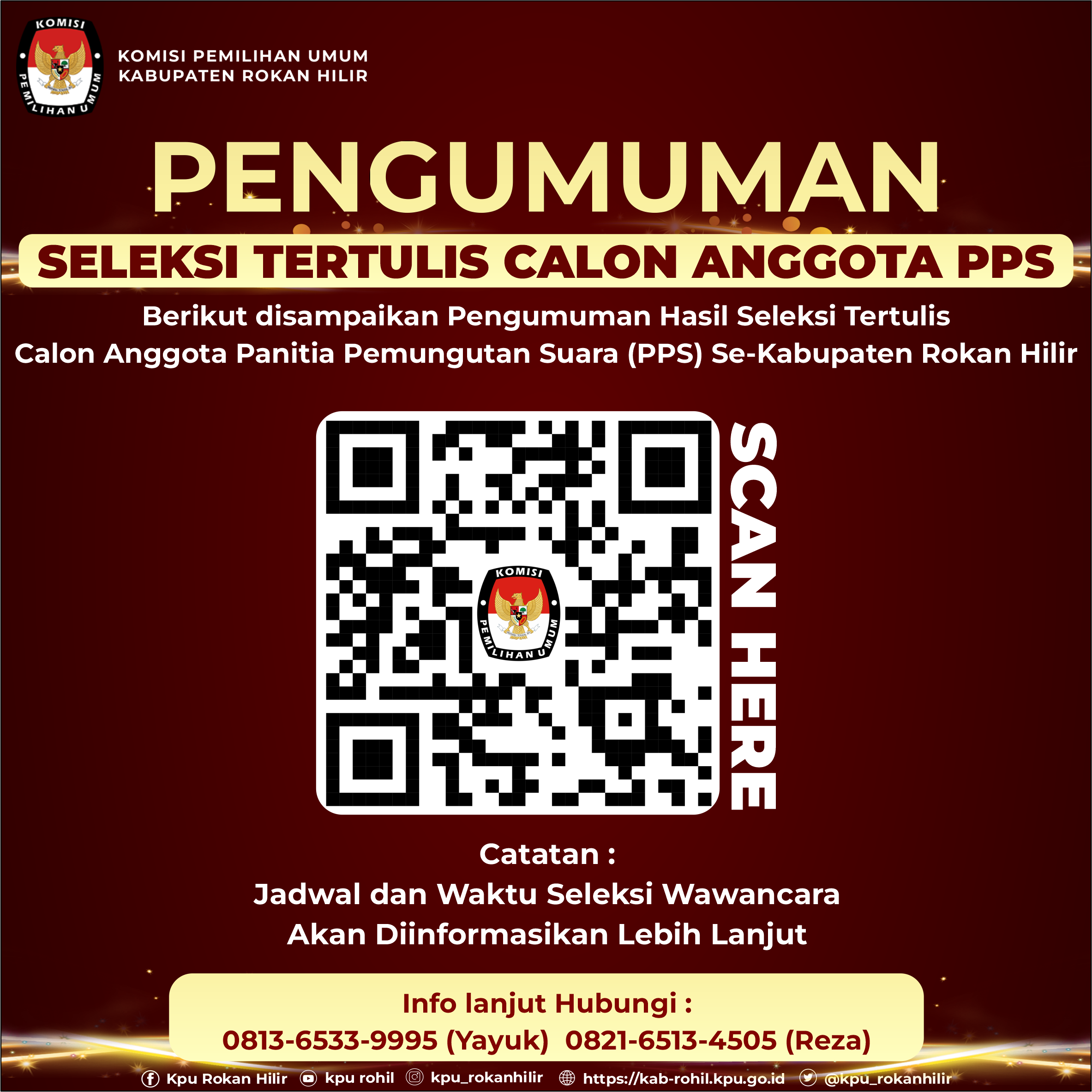 Berikut disampaikan pengumuman hasil seleksi tertulis calon anggota Panitia Pemungutan Suara (PPS) untuk Pemilihan Umum Tahun 2024