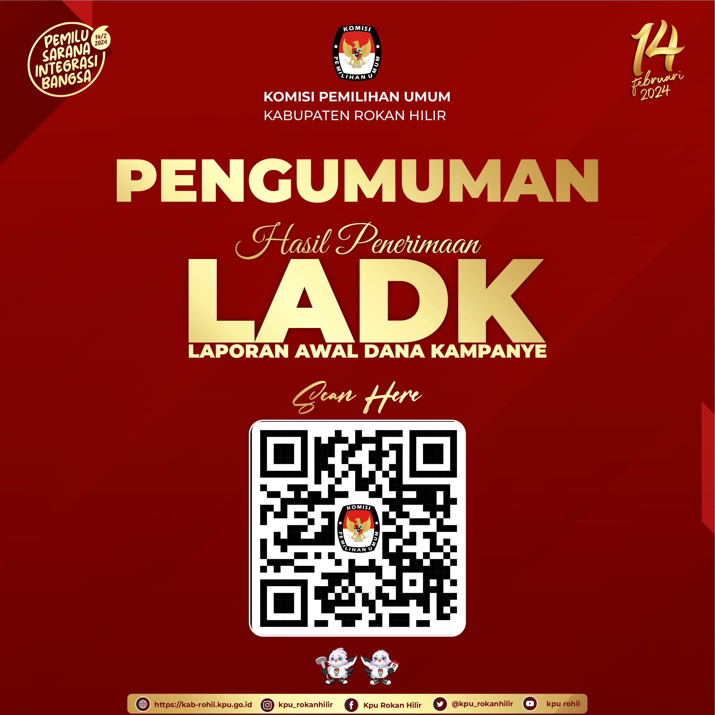 Berikut disampaikan Pengumuman Penerimaan Laporan Awal Dana Kamanye (LADK) Pemilihan Umum Tahun 2024 di Kabupaten Rokan Hilir