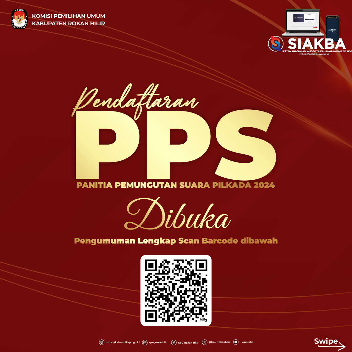 Dalam rangka pembentukan Calon Anggota Panitia Pemungutan Suara untuk Pemilihan Gubernur dan Wakil Gubernur, Dan Bupati dan Wakil Bupati Tahun 2024, Komisi Pemilihan Umum Kabupaten Rokan Hilir mengundang Warga Negara Indonesia yang memenuhi kualifikasi untuk mendaftarkan diri menjadi Panitia Pemungutan Suara untuk Pemilihan Gubernur dan Wakil Gubernur, Dan Bupati dan Wakil Bupati dengan ketentuan sebagai berikut: