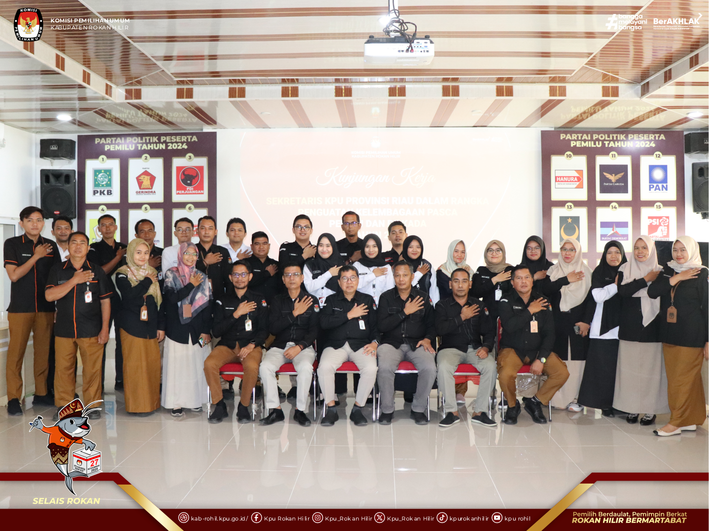 SEKRETARIS KPU RIAU BERI PENGUATAN KELEMBAGAAN PASCA PEMILU DAN PILKADA 2024 DI KPU ROKAN HILIR